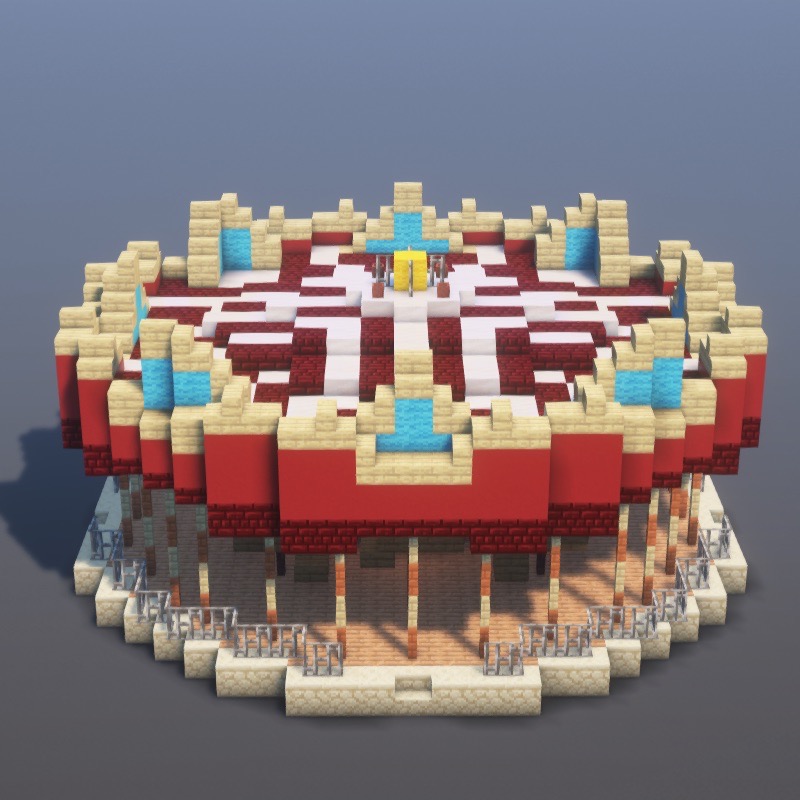 Learn how to build Horse Carousel in Minecraft with this detailed 204-step decoration tutorial. This decoration build uses Jungle Planks, Smooth Stone, Red Nether Brick Slab, Smooth Quartz Slab and 22 more materials. Follow our step-by-step images to create this decorative structure, perfect for adding detail and flair to any world. An epic project for experienced builders.